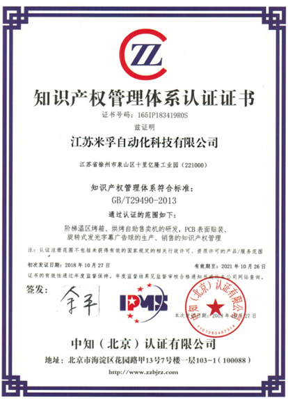 知识产权管理体系认证证书